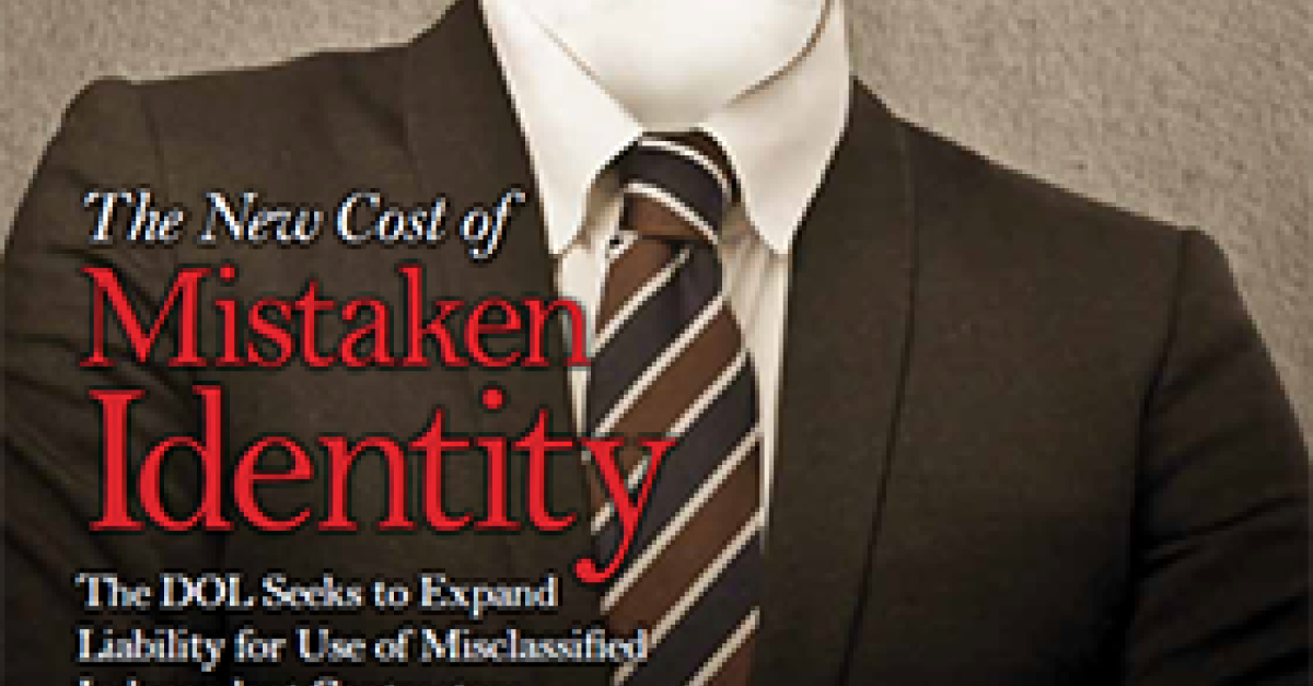 A recent WC Magazine article, "The New Cost of Mistaken Identity," spotlights liability risks workers’ compensation payers may face in misclassifying workers as independent contractors to avoid paying certain wages, benefits and taxes. With recent Department of Labor (DOL) initiatives designed to stop the practice, this article details the legalities of classification and examines vendor relationships to reduce potential risk.